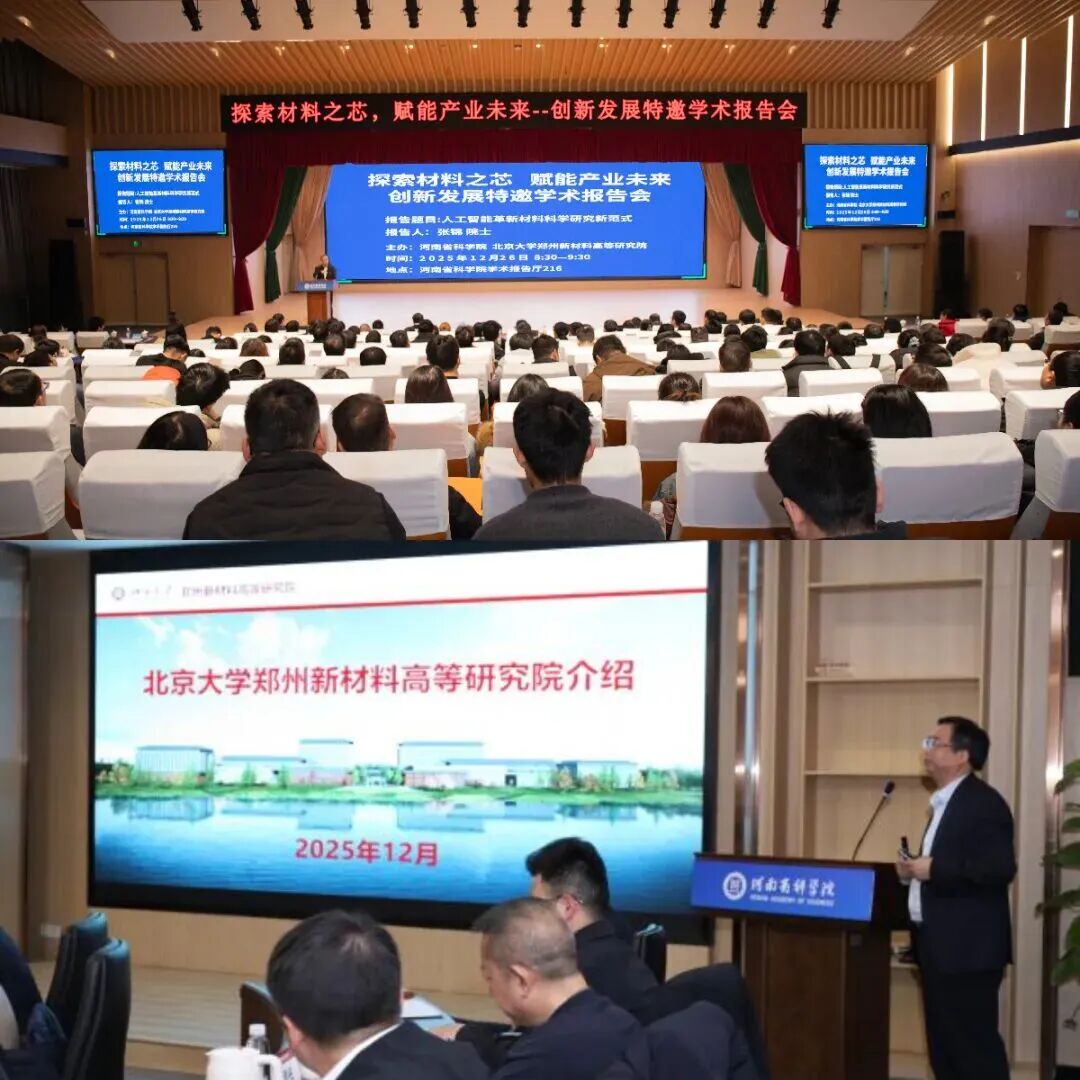 26日上午,“探索材料之芯 赋能产业未来”学术报告会暨创新发展研讨会在河南省科学院举行。河南省科学院党委书记宋克兴主持会议,中国科学院院士张锦作《人工智能革新材料科学研究新范式》主题报告,邹如强介绍北京大学郑州新材料高等研究院发展建设情况,研究院八个落地项目的首席科学家逐一进行项目路演,展示了北大材料人在面向国家重大战略需求、紧密对接产业实际痛点方面的创新活力和务实举措。